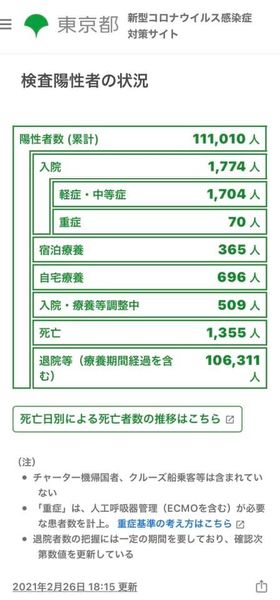 2月27日の都内の新型コロナウイルス入院患者数ですが、1774名となり、重症者も70名となっております。週末ごとの減りが、かなりゆっくりとなってきました。また、今週末も医療を受けられない人々が1570名もいらっしゃるのが都内の現状です。