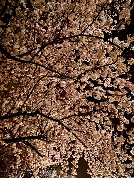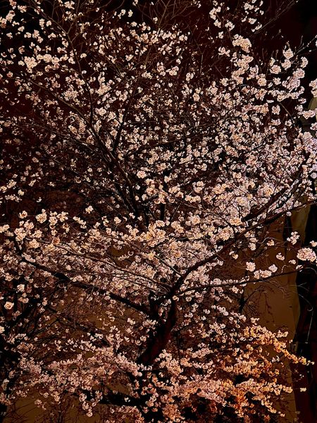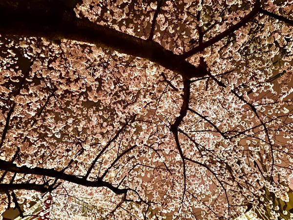 ライトアップはここ数年控えておりますが、夕方の夜桜はやっぱり見事です。