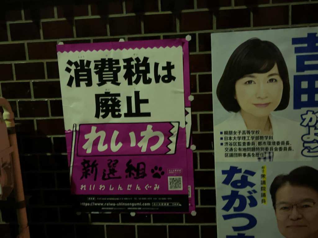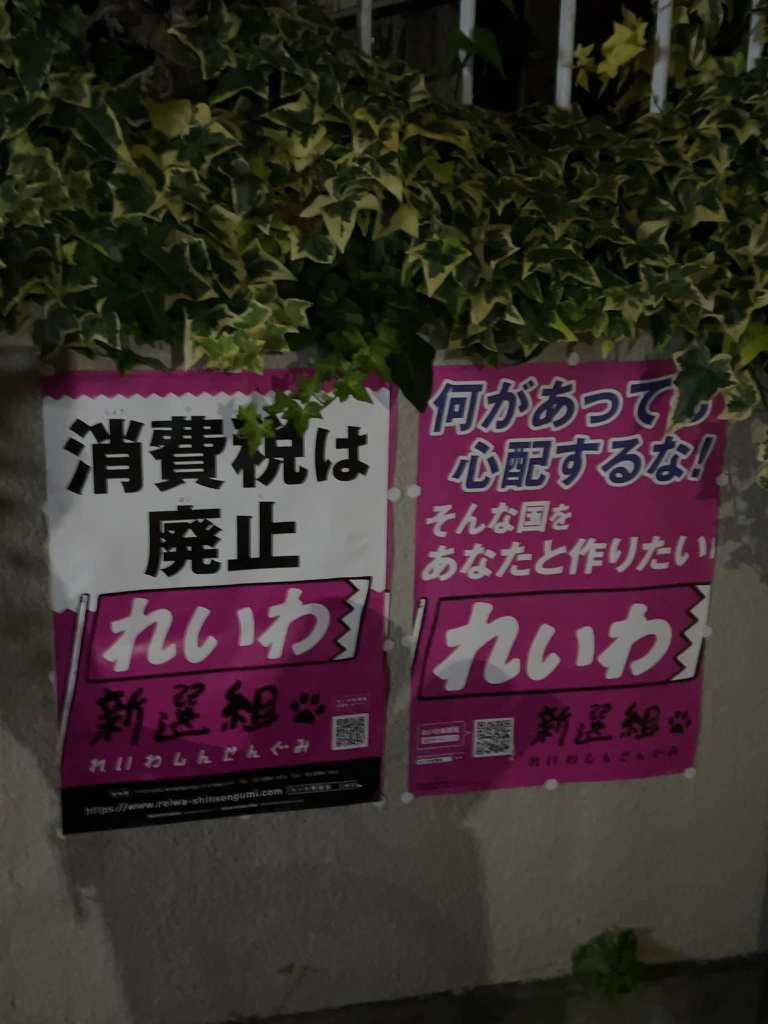 私も22日の日をまたぐギリギリまで、渋谷区内のれいわ新選組の山本太郎代表の写真入りのポスターをれいわ新選組のポスターに雨に濡れながら変えました。