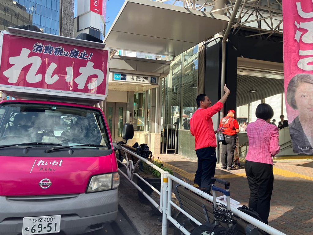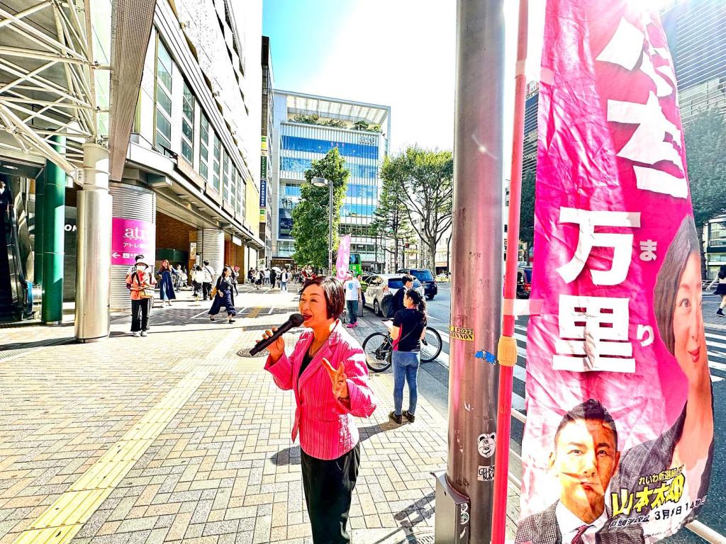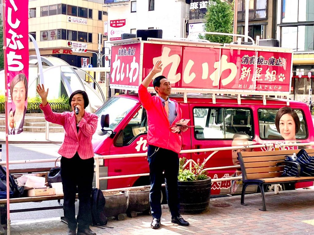 「先日は恵比寿駅西口のれいわ新選組共同代表くしぶち万里と私のとの、街頭演説会にお集まり頂きありがとうございました」