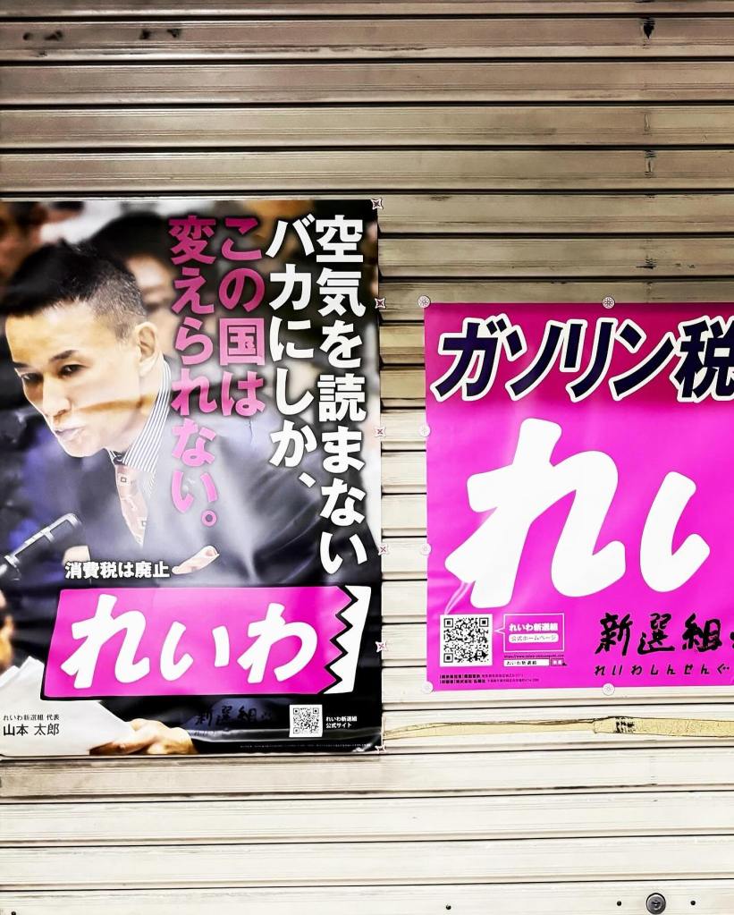 れいわ新選組のポスター展を堀切ねんじん事務所の壁面にて開催しております。