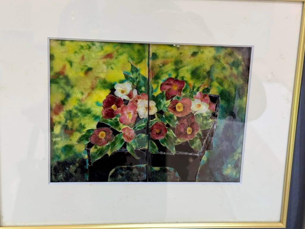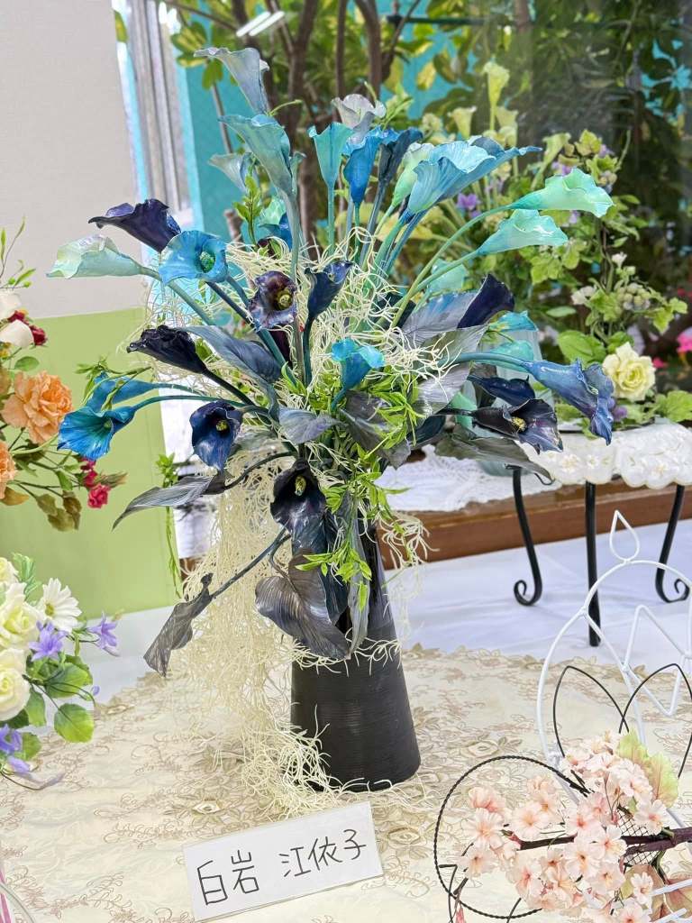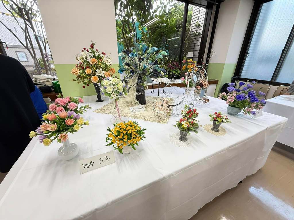 ドライフラワー、障がい者団体の方々の作品、七宝焼や生花、水彩画、着物や古着など活用して織物作品、最近はパソコンでのアート作品なども展示され、見事な表現力を発揮されてました。