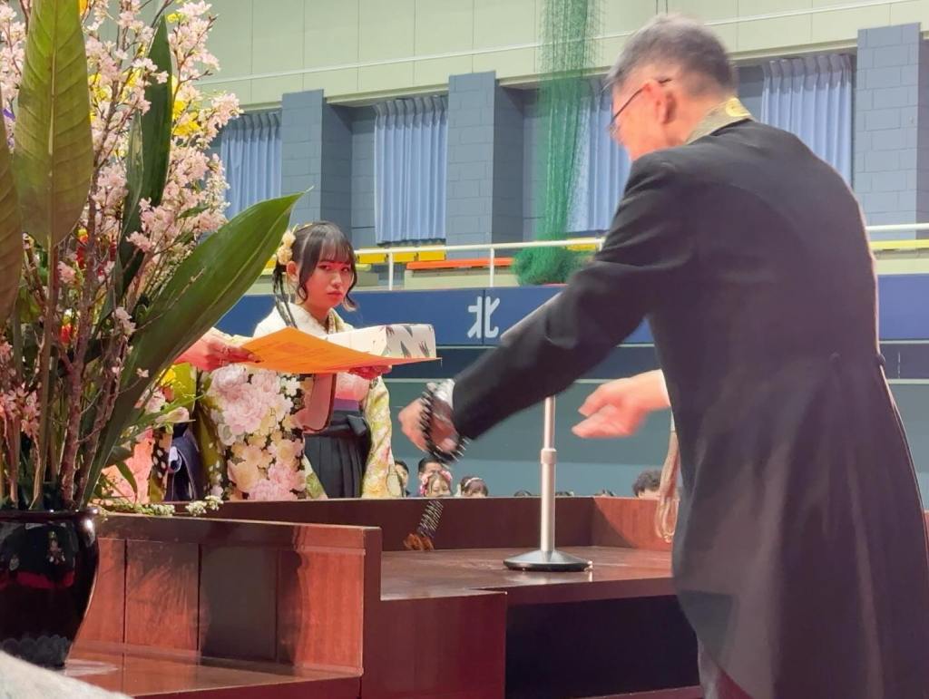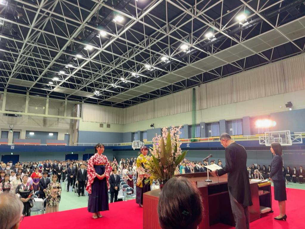 今年度は経営学部、教育学部をご卒業される方々の中で多くの方々が教職、保育士に着かれる方々は大学受験、在学中もコロナ禍という厳し環境で、教育職や保育士の国会資格を取得された方、またはゼミなどで大手企業の職場でインターンを体験され、無事就職される方など実に苦難を乗り越えて学士を得ました。