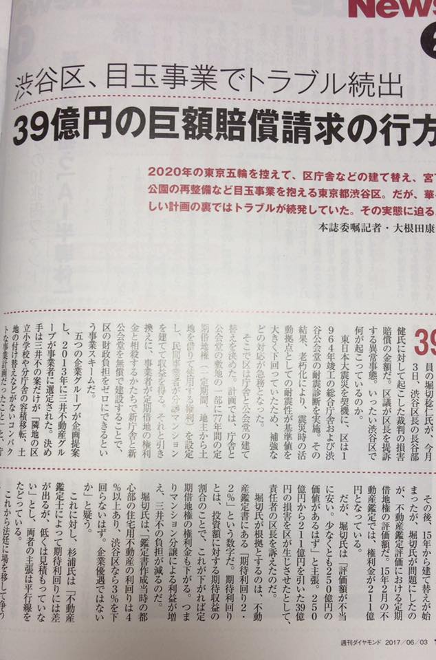 さて、私が渋谷区新庁舎建設で区民三代に渡り大損?しないように提起した訴訟について週刊ダイヤモンドに掲載中です!